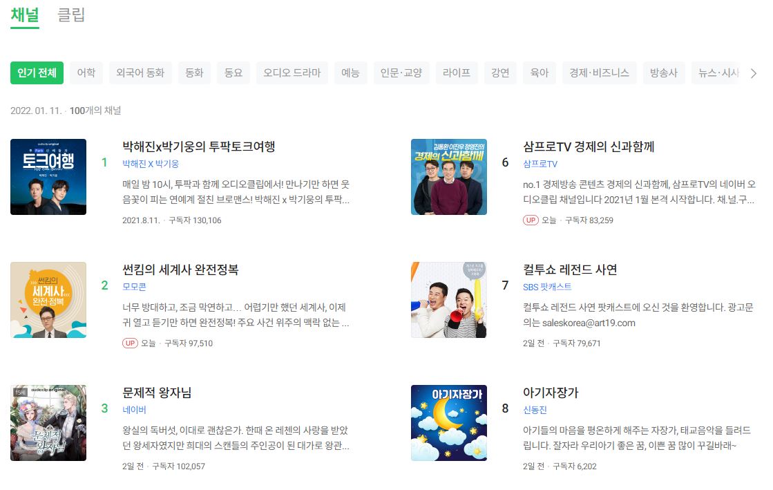 네이버 오디오 클립 랭킹 바로가기 2 https://audioclip.naver.com/panels/rank