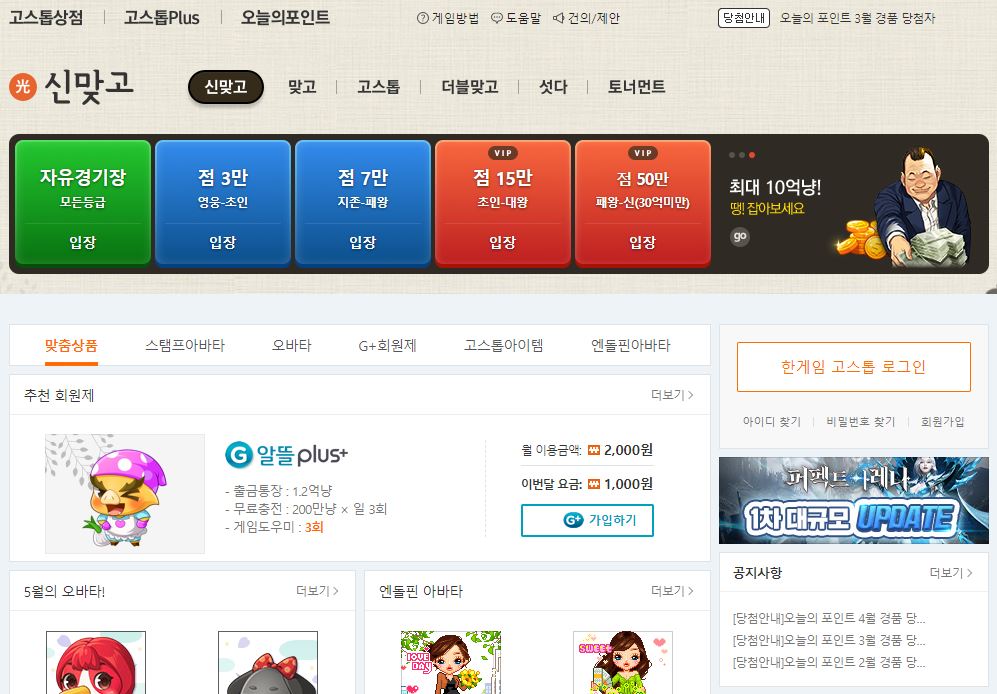 한게임을 통해 3명이서 즐기는 고스톱과 1:1로 대결을 할 수 있는 신 맞고가 있습니다. 신맞고, 맞고, 고스톱, 더블 맞고, 섰다 등의 게임이 있습니다. 고스톱도 한게임 머니로 할 수 있으며, 고스톱 아이템과 아바타 등을 구매하면 캐시를 얻을 수도 있고 게임 내에서 사용 가능한 아이템을 구매할 수도 있습니다. 고스톱도 도박의 한 종류로 볼 수 있기 때문에 중독되지 않도록 가볍게 즐기는 정도로 하면 좋을 것 같습니다.